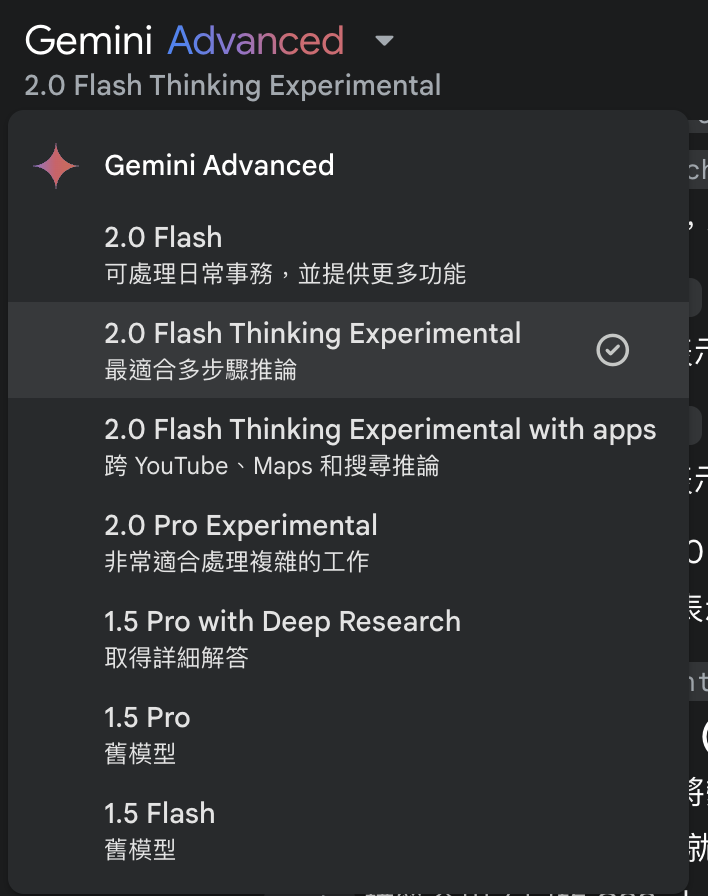 這裡採用最新的 2.0 Flash Thinking Experimental 模型和 Gemini 問答。可惜後來我才發現這模型無法分享對話串出來。